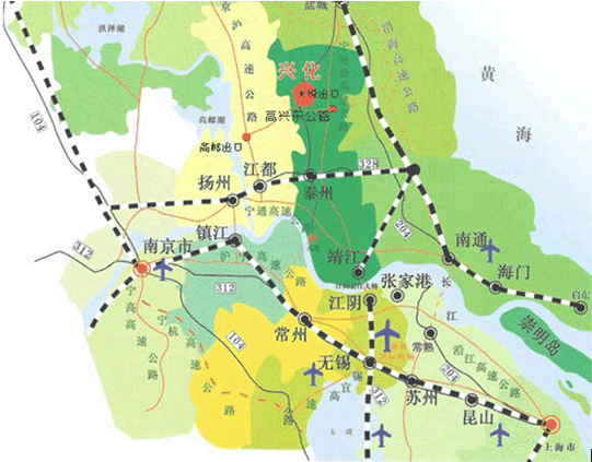 西南地区、中南地区客户进入江苏境内后(即南京方向),沿宁通高速至江都,转京沪高速至兴化